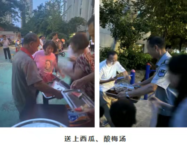 夏日酷暑难耐,山河锦秀物业各项目在门岗、园区入口等位置为业主免费送上清凉饮品(酸梅汤、菊花茶、柠檬茶等)和西瓜。一杯杯饮品、一块块西瓜都凝聚着山河锦秀物业对业主的关爱,不仅驱散了夏日的炎热,更让业主们感受到了山河锦秀物业的关怀与温暖。