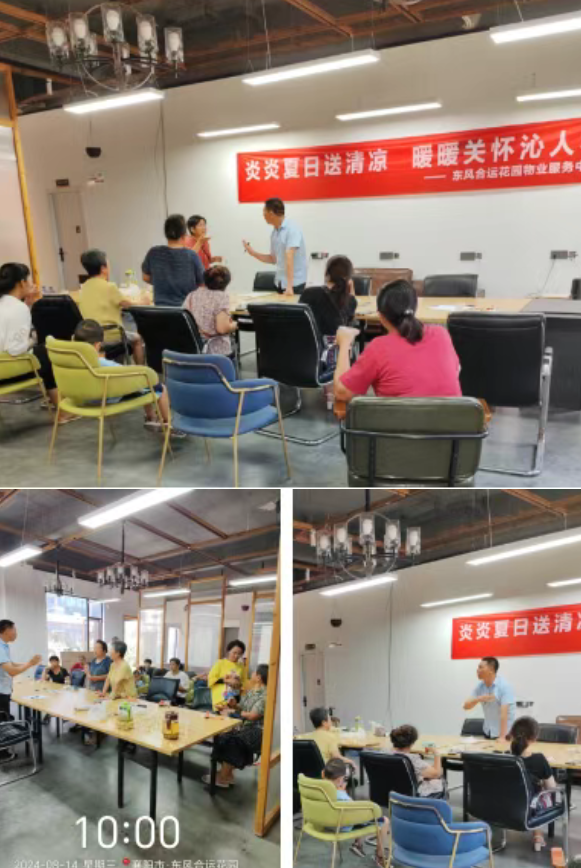 为了精准了解业主诉求,解决问题、维系物业与业主的情感。东风合运花园项目举办了“炎炎夏日送清凉,暖暖关怀沁人心”业主茶话会活动,不仅讲解了防暑降温的相关小知识,更与业主进行了一次心与心的诚挚交流。