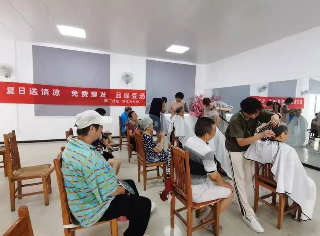 7月26日,军立为物业在3542小区活动室开展夏日关怀活动——“夏日送清凉·免费义剪·品绿豆汤”。