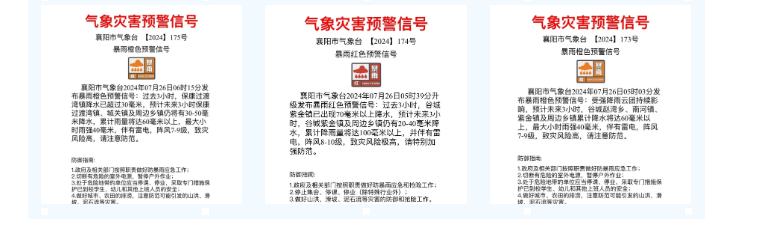 湖北省自然资源厅、湖北省气象局联合发布湖北省地质灾害气象风险预警:2024年7月25日20时—7月26日20时,预计三峡库区(巴东中北部、兴山、秭归北部)、襄阳(谷城南部、保康、南漳)、恩施(鹤峰)、咸宁(通山南部和东部)、黄石(阳新)、黄冈(武穴、黄梅),以及其他强降水区域发生崩塌、滑坡、泥石流的风险较大。