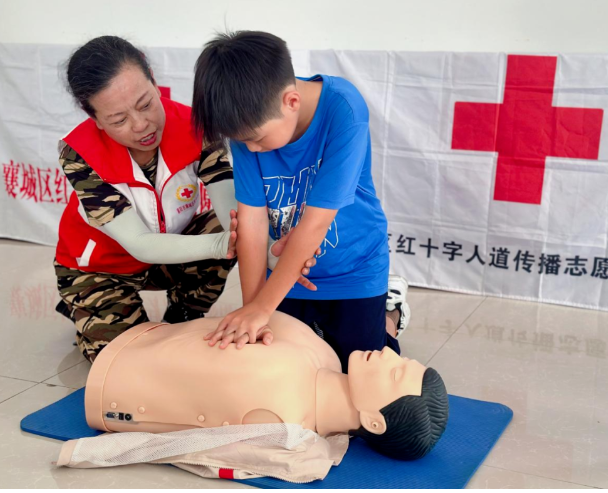 在活动中,红十字会志愿服务队的老师向未成年人详细讲解了防溺水技巧和急救知识,通过生动的讲解和互动问答,向孩子们传授了防溺水的重要性和具体预防措施,并进行了现场演示和实操练习。孩子们在轻松愉快的氛围中,不仅掌握了防溺水技能,还学会了如何在紧急情况下进行自救和互救,孩子们纷纷表示要牢记防溺水知识,远离危险水域。