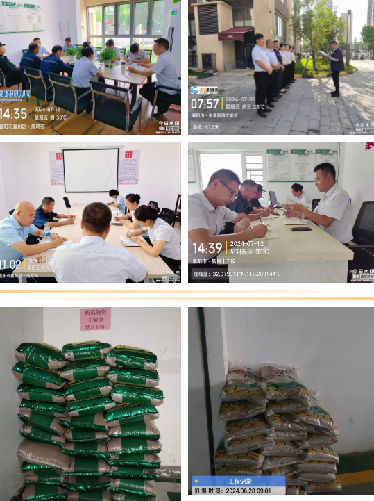 为做好汛期物业服务保障,襄阳津韵公司提前对应急预案进行演练、工作部署安排、全面检查疏通各小区雨污排水系统、测试抽污水设施是否正常,采购储备挡水板、沙袋、抽水泵、雨衣、防水布等防汛物资,全体物业人严阵以待守护小区安全。