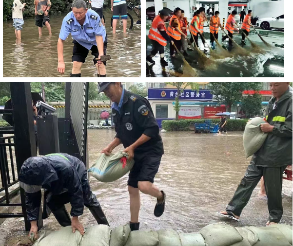 当上周强降雨持续不断、红色预警发布时,春润物业人迅速行动起来。他们穿上雨衣,手持工具,在倾泻的大雨中穿梭于小区中,全天候巡查小区、天台、设备设施房、地下车库等公共区域,通过铺设防汛板、放置防洪沙袋等措施,确保了小区的排水系统畅通。物业团队积极发布降雨预警公告,提醒业主关闭门窗、清扫积水、处理排污管堵塞等,全力保障小区的安全。春润物业团队用实际行动证明了对小区安全和居民的关心与守护,让业主们在风雨中感受到了家的温暖和安宁。
