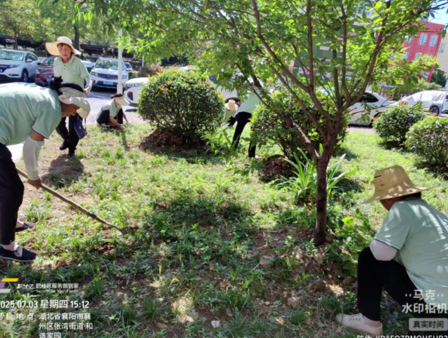 应对高温天气,小区绿化采取“抓两头、歇中间”的错峰工作模式,师傅手持割草机、剪刀等工具,有序清理杂草、修剪绿植。师傅“面朝绿地背朝天”地忙碌着,用汗水呵护绿意,勾勒出小区的“最美身影”。虽然衣服被汗水浸透但看到绿化带变得整齐亮丽,心里特别踏实。