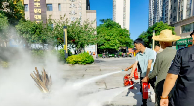 为切实增强居民的消防安全意识,提升物业与社区应对火灾突发事件的协同处置能力,2025年7月4日下午16:30时,绿都物业朗曼梦公园与余岗社区余主任一行联合开展了一场极具意义的消防灭火器演练活动。此次活动现场氛围活跃且有序,最终收获了显著成效。
