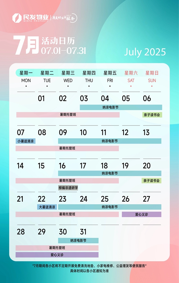 【服务提质】多彩暑期!请查收民发物业7月活动日历→