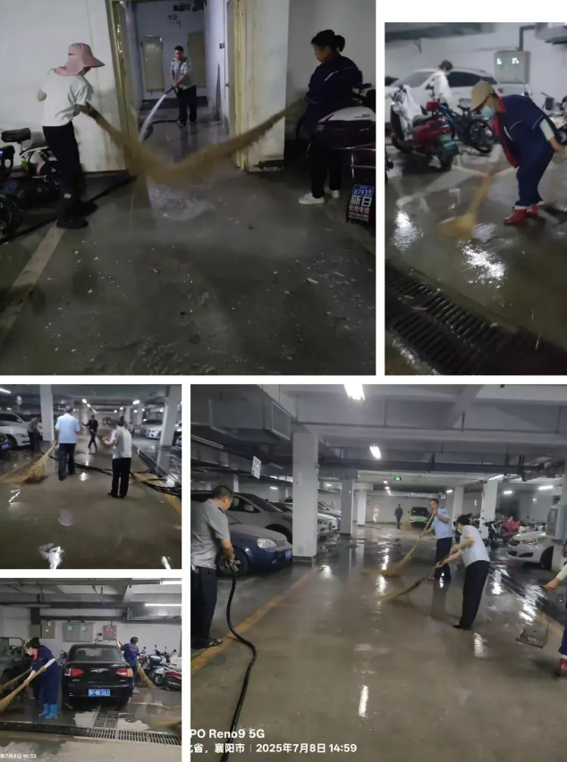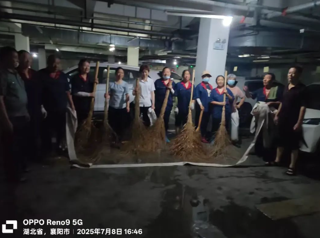 潮湿的角落、积灰的管道、模糊的标识……地下室作为家园里“低调”的存在,往往藏着许多被忽略的细节。7月8日,和谐苑高层团队全员出动,带着扫把、撮箕、和水枪满满的干劲,要给它来一场彻底的大扫除——不为别的,就想让每一处空间都配得上“家园”二字的温暖。