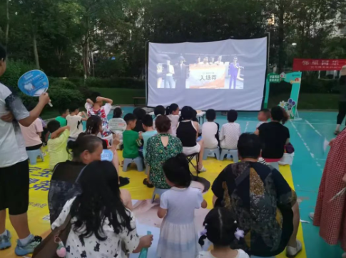活动现场,幕布一拉、灯光一暗,大朋友小朋友自带小板凳围坐,晚风伴着光影交错。邻里们摇着扇子唠家常,孩子们嬉笑打闹,仿佛回到了童年时光。