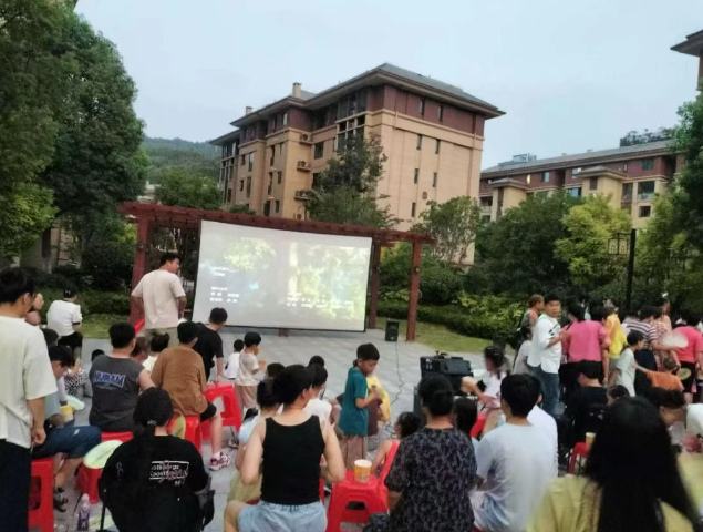 热浪翻涌,蝉鸣喧嚣,襄阳的夏夜依然笼罩着挥之不去的暑气。在碧桂园嘉悦城与御玺碧桂园的小区空地上,一片别样的清凉正悄然铺展——深蓝夜幕下,白色幕布被晚风轻轻拂动,清晰映照出《飞屋环游记》里缤纷斑斓的气球,以及《熊出没》中憨态可掬的身影,大人孩子们的笑语交织于光影之间。这是碧桂园物业襄阳分公司党支部志愿者们精心编织的仲夏夜之梦,一场“星空电影节”正为社区邻里消解酷暑,点燃温情。
