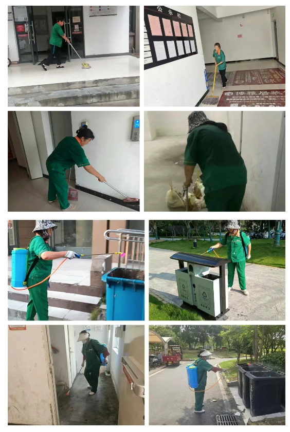 晨曦刚刚划破夜空,城市仍在沉睡之中,保洁员们的身影已悄然出现在小区的各个角落。地面被太阳炙烤得滚烫,仿佛能瞬间融化鞋底,厚重的工作服很快就被汗水湿透,紧紧地贴在他们的脊背上。然而,他们顾不上擦拭额头不断滚落的汗珠,全神贯注地清扫拖洗地面,细心擦拭每一处灰尘,精心清洁各类设施。为了应对高温天气极易滋生的卫生隐患,他们还背着沉甸甸的消毒箱,脚步匆匆地穿梭于各个公共区域,进行全面细致的消杀工作。无论是每一个隐蔽的角落,还是每一处狭窄的缝隙,他们都绝不放过,只为确保公共区域始终保持洁净,没有一丝异味。他们那粗糙却充满力量的双手,为居民筑起了一道坚不可摧的健康防线,让家园即便在高温的笼罩下,依然清爽宜人。