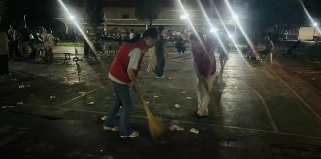 电影散场,温情延续。党员志愿者们再次主动上前,默默收拾起桌椅,清理现场垃圾,确保活动场地整洁如初。他们忙碌的身影,是服务精神的无声诠释,也是党建引领下物业服务温度的具象体现。