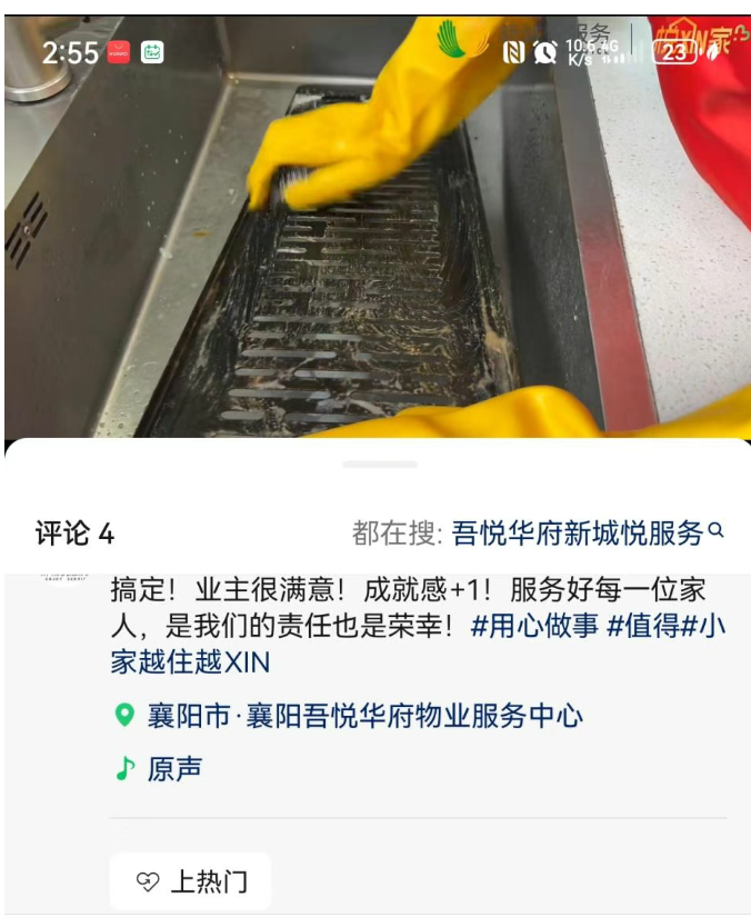 在日常生活的琐碎中,一些看似微小却关乎生活品质的细节,往往容易被忽视。油烟机的油污堆积、空调滤网的积尘,这些小问题可能会给您的生活带来诸多不便,甚至影响健康。但在襄阳吾悦华府和南漳新城悦隽小区,西藏新城悦物业服务股份有限公司襄阳分公司正以实际行动,为业主们解决这些生活中的 “小烦恼”。