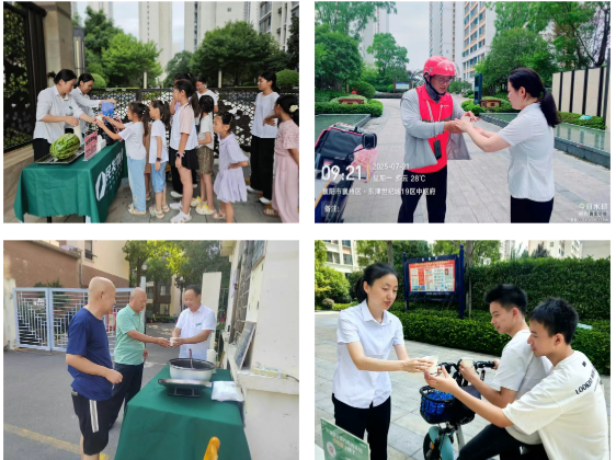 同时在小区内支起“流动甜水铺”,在小区乘凉处、架空层休息区等区域,流动为业主们发放消暑饮品,为夏天增添一份清凉。
