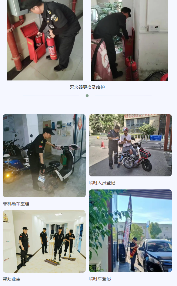 他们的工作很普通,也许不被人理解,也许让人厌恶,但他们依旧坚持,因为他们心记小区安全永远是第一。秩序员对进出车辆实行监管指引,对外来人员进行登记放行,对监控系统和消防主机实时关注,24小时坚持与守护,为业主居家安全保驾护航。