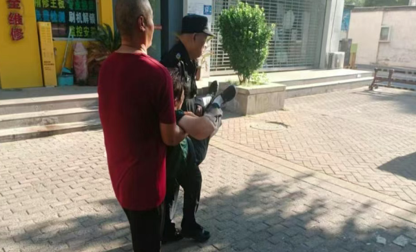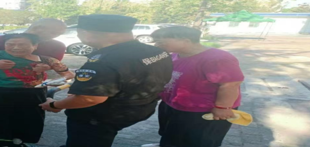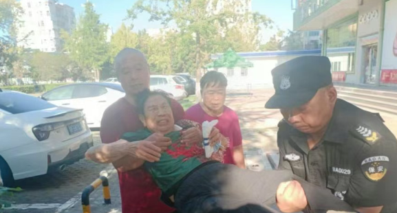 安保人员王胜青、惠文利、熊涛立刻意识到情况紧急,迅速赶到老人身边。他们小心翼翼地将老人扶起,并齐心协力将老人抬到中关便利店,避免对老人造成二次伤害。其中一名安保人员蹲下身子,轻声询问老人的身体状况和家人联系方式,同时安抚老人的情绪:“老人家,您别着急,我们已经在联系您家人了,您先缓缓。”