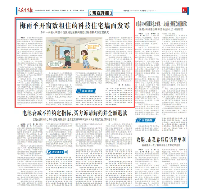 法院审理后认为,在租赁房屋后实际使用的近5个月期间,房屋并无任何霉渍,李小姐已尽到交付符合正常安全使用条件房屋的义务。同时,根据房屋楼栋墙面、室内窗户上的相关提示以及中介人员明确表述,李小姐也合理告知了王先生房屋使用注意事项。但王先生在梅雨季开窗,明显使用不当,应承担维修责任,其拒绝履行维修义务,违反合同约定,应当承担违约责任。