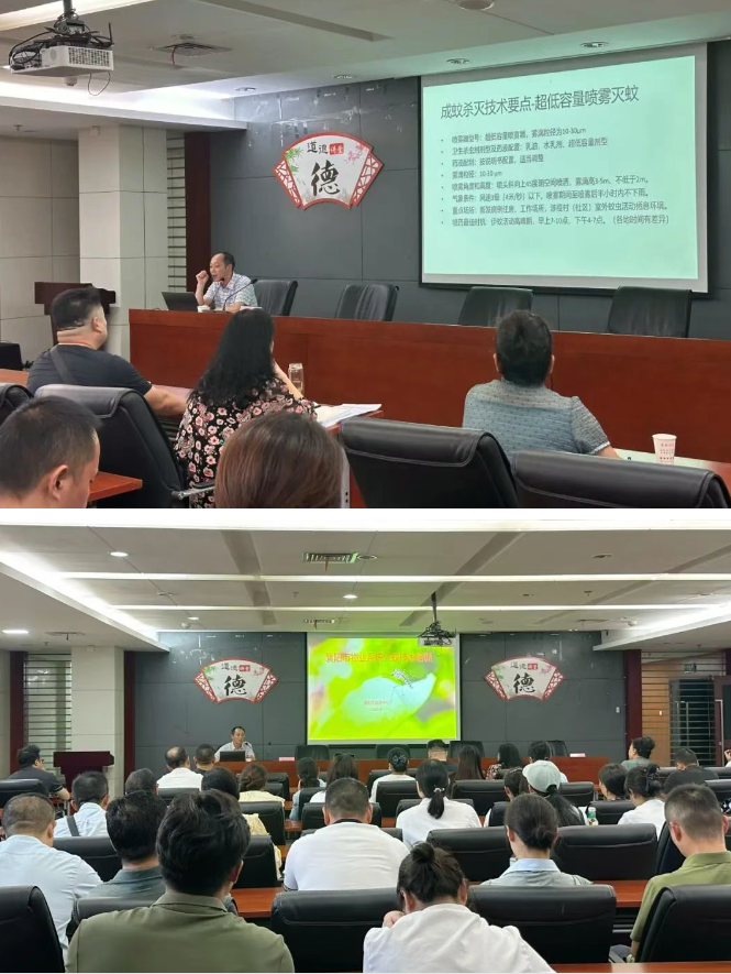 本次培训特别邀请市疾控中心专家陶仙华授课,结合小区实际场景特点,深入浅出解读“高温、高湿”环境下的疫情防控消杀要点,围绕成蚊、幼蚊生长习性、孳生地清理技巧、科学消杀药剂选用、安全操作规范等关键内容展开详细讲解,并通过真实案例分析帮助参训人员快速掌握可落地的防蚊灭蚊技能。