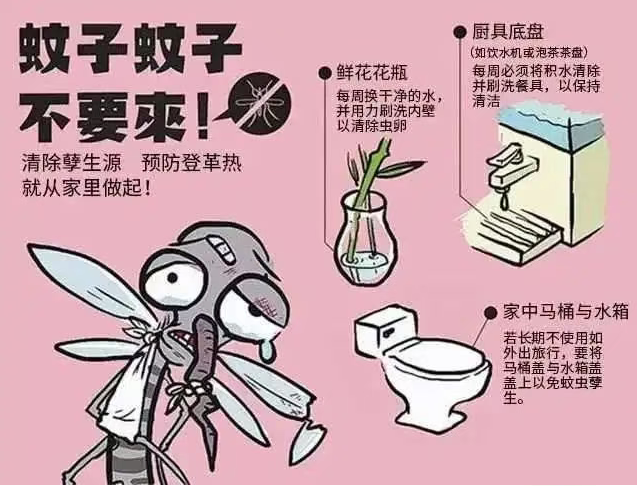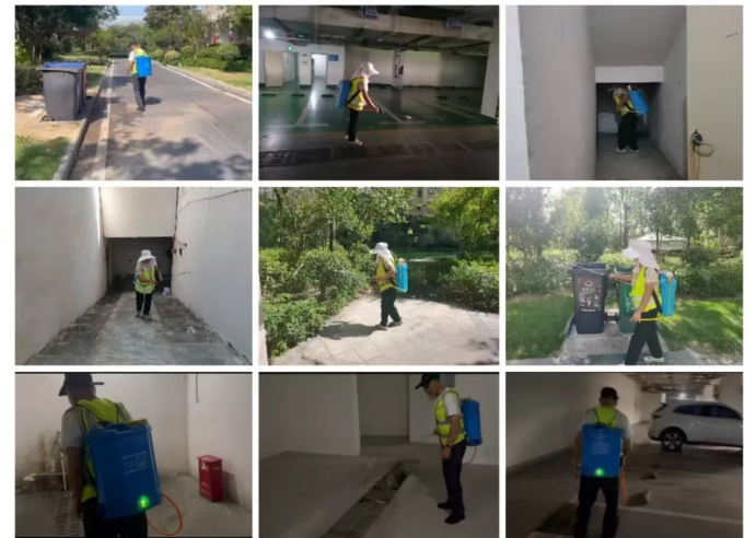 对小区积水进行清理、冲洗,以及下水道、垃圾站等公共区域消杀,减少蚊虫孳生。