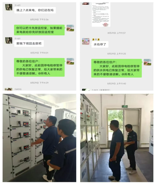 确认各项指标正常后,于下午16点恢复了公寓内的供电。当灯光亮起,公寓内恢复了生机与活力,住户纷纷在微信群内对工程组的高效检修表示感谢。