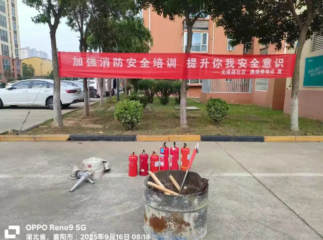 活动伊始,物业工作人员在小区广场为居民们进行了消防安全知识培训。从常见火灾隐患的识别,到灭火器的正确使用方法,再到火灾发生时的逃生技巧,工作人员都进行了细致且专业的讲解。