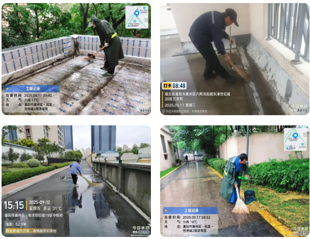 暴雨到来前,各小区紧急部署,组织保洁人员对园区内所有雨水井、排水沟、天台地漏、排水管道等进行全面清掏和疏通,确保排水网络畅通无阻,防止因堵塞导致内涝。
