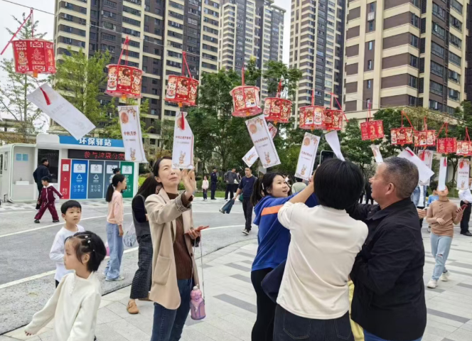 在灯笼 DIY 区域,早早便围满了充满创意的业主。当一盏盏独一无二的灯笼完成制作,点亮烛火的瞬间,不仅照亮了孩子们的笑脸,更让节日的氛围感在社区中悄然升温。不少业主表示:“亲手做的灯笼更有意义,既能装饰家,又能让孩子了解传统节日,太贴心了!”