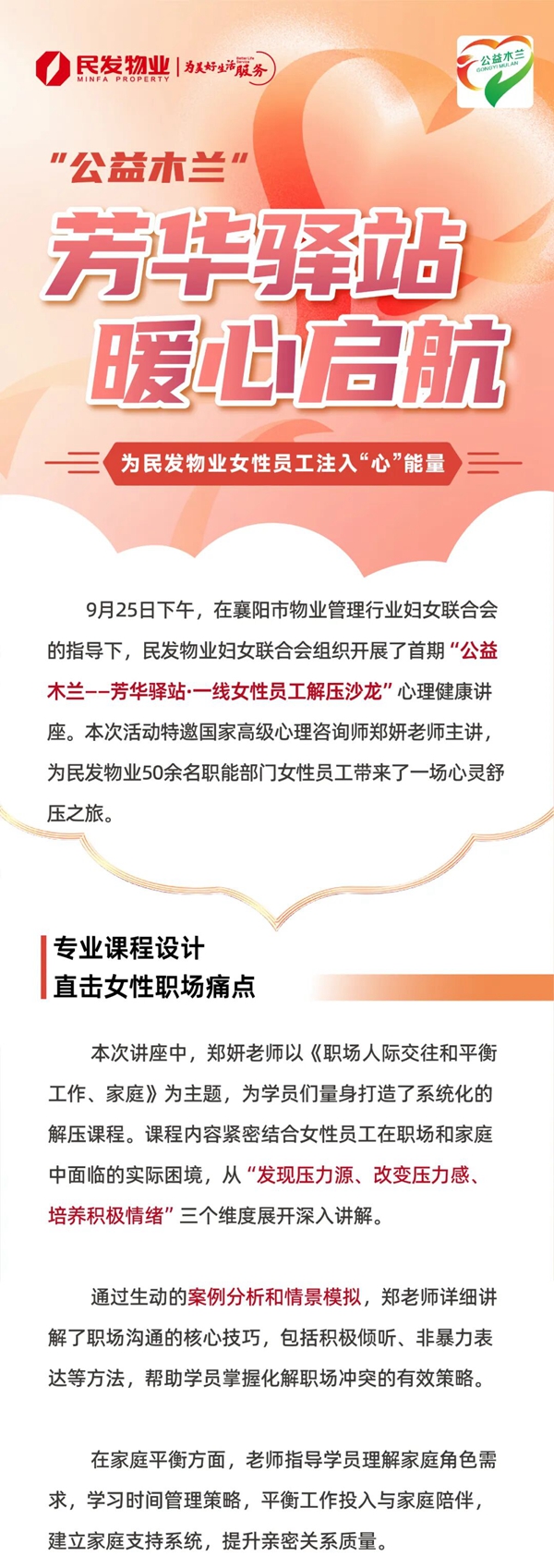 【暖心物业暖心事】“公益木兰”芳华驿站暖心启航,为民发物业女性员工注入“心”能量