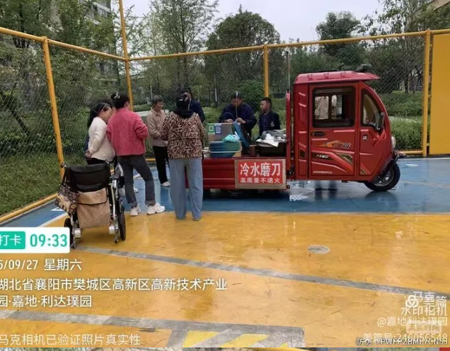 活动当天,现场气氛热烈。业主们纷纷带着自家的刀具来到篮球场,有序排队等候。物业工作人员热情地接待每一位居民,认真登记刀具信息,并耐心解答业主们的疑问。磨刀师傅们则技艺娴熟地为业主们磨着刀具,一把把钝刀在他们的手中变得锋利无比。为此次磨刀活动中更多了一些暖心。