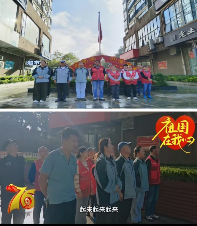 一面国旗,承载着万千赤子情怀;一块月饼,传递着邻里守望温暖。9月30日,在新中国成立76周年即将来临的喜庆时刻,绿都物业党支部将爱国主义教育与民生关怀相结合,同步开展升国旗唱国歌仪式与中秋慰问活动,以“红色初心”守护“幸福民心”,让国庆的庄严与中秋的温情在海润名都小区交融绽放。