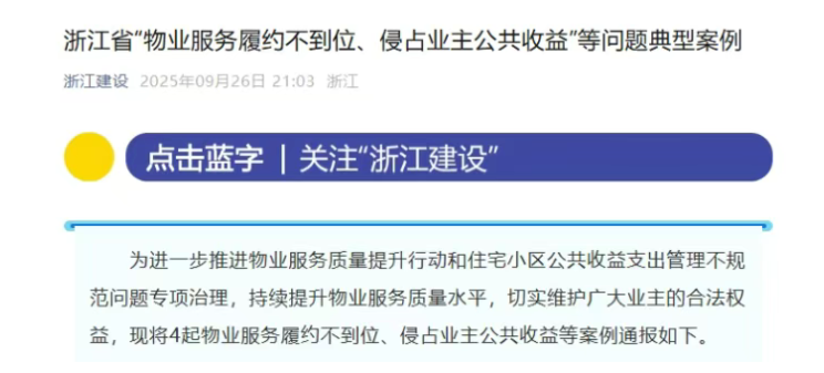 浙江住建这份通报最后强调:广大物业服务企业及从业人员、住宅小区业主委员会等要坚持以案为鉴、以案促改,举一反三、严格自律,合力推动物业服务行业健康、规范、有序发展。