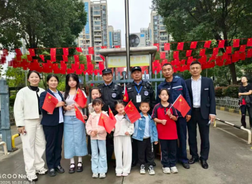 金秋送爽,丹桂飘香,在中华人民共和国成立76周年的喜庆时刻,鹿鸣苑物业服务中心物业于10月1日清晨,组织全体员工、业主代表及学生代表,隆重举行升国旗仪式,以庄严的方式抒发对祖国母亲的无限热爱与深切祝福。