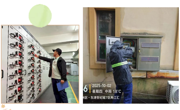 水电畅通、电梯平稳、设施完好,是节日生活舒适便捷的基础。从配电房到风机房,从电梯井到设备间,工程师傅们深入每一个关键节点,进行精心维护,确保所有设备“心脏”强健有力。