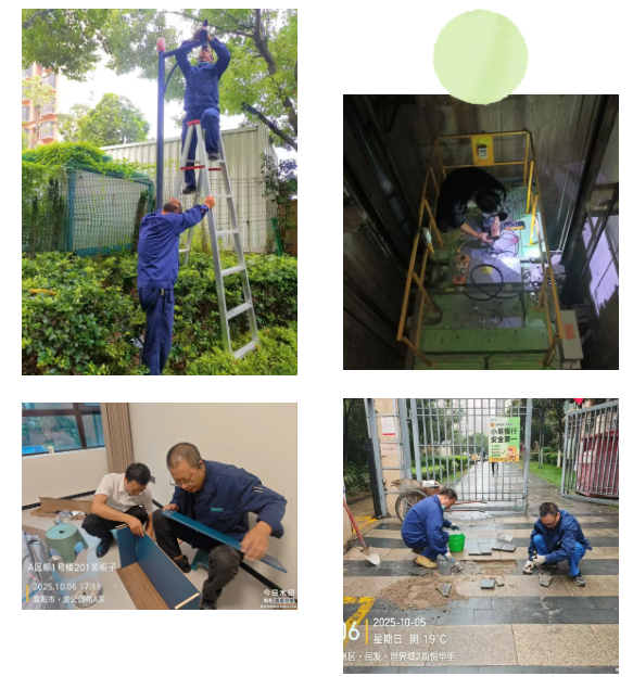 无论是架梯子登高修灯,还是躬身埋头修理路面,家园里的各个角落,都有他们悉心守护的身影。