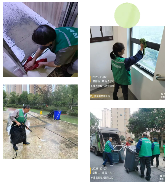 每天一早,保洁员们便对小区楼栋展开了全面清洁,不放过任何一处污垢。针对假期激增的生活垃圾,他们增加了清运频次,确保垃圾日产日清。