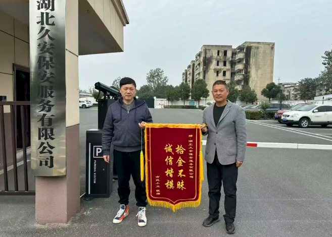 10月22日,小王特意制作了一面写有“拾金不昧,诚信楷模”的锦旗,送到湖北久安保安服务有限公司。“本来都不抱希望了,没想到保安师傅这么负责,帮我挽回了损失!”小王再三致谢,对安保人员拾金不昧的职业素养赞不绝口。