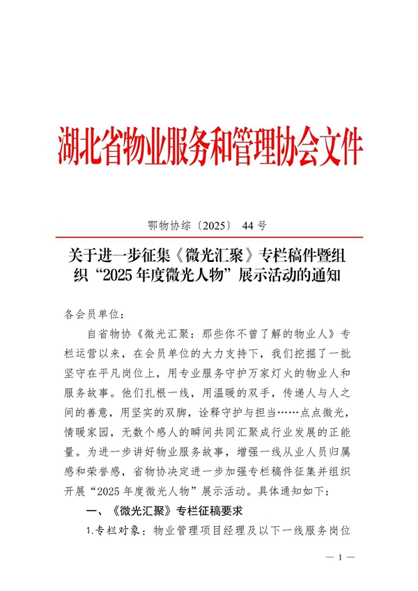 关于进一步征集《微光汇聚》专栏稿件暨组织“2025年度微光人物”展示活动的通知