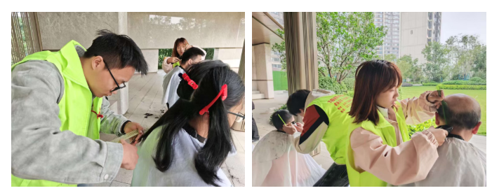 物业工作人员也全程陪伴在侧,陪他们拉家常、聊近况,询问生活中的需求与不便,现场氛围轻松而温暖。“头发剪得真精神,物业想的太周到了!”刚理完发的张阿姨看着镜子里整洁的发型,满意地连连称赞。李爷爷也笑着说:“年纪大了出门不方便,物业把理发服务送到家门口,真是解决了我们的大难题,心里特别暖和。”