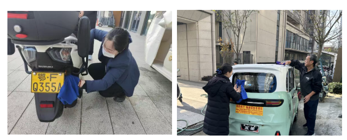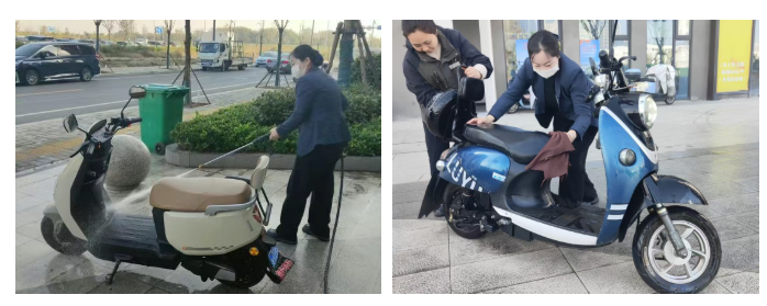 清洗过程中,业主们纷纷点赞。“平时自己洗太麻烦,物业这服务太周到了!”“看这擦得多干净,跟新车似的!”在一片片欢声笑语中,业主和物业之间的情谊悄然升温。孩子们围着清洗后的电动车好奇打探,大人们则在一旁话说家长,现场洋溢着温馨和谐的氛围。