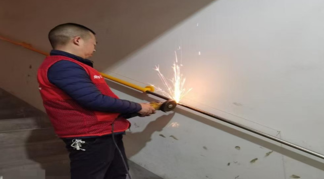 为确保扶手安装既实用又美观,党支部安排党员同志全程跟踪监督,优选防滑耐磨、承重性强的优质材质,严格按照施工规范打孔固定、调试检验,力求每一处细节都符合安全标准。施工过程中,减少对业主生活的影响,同时及时清理施工垃圾,保持楼道环境整洁。经过数日紧锣密鼓的施工,小区所有楼栋楼道上楼顶通道均加装完成安全扶手,为业主搭建起一道“有形”的安全屏障。