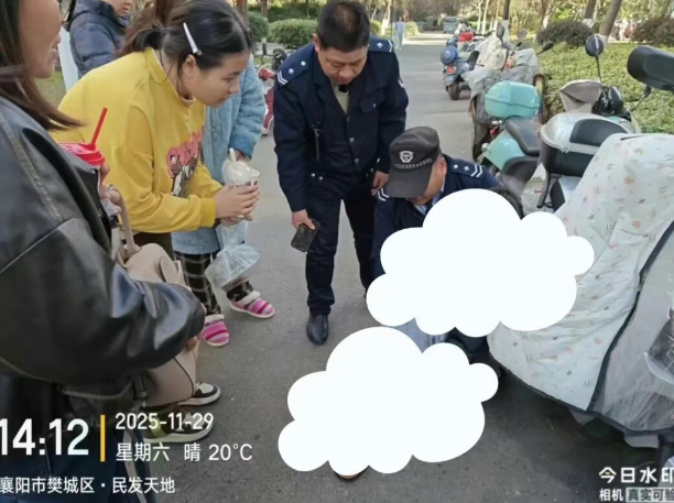 11月29日下午,樊城区民发天地小区的步道旁,一场暖心救援正在上演——物业安保人员快速救助突发身体不适的年轻业主,从紧急看护到协助送医,用行动诠释了“民发物业不是旁观者,而是守护者”的责任担当。