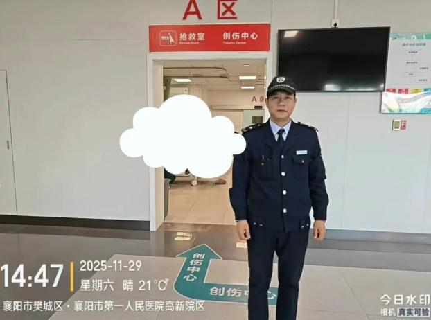 随后,一名安保队员主动跟随急救车前往襄阳市第一人民医院高新院区,协助办理就诊手续,并及时联系上业主家属,全程陪护直至家属赶到医院才默默返回岗位。