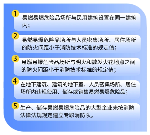 易燃易爆危险品场所具有以下情形之一的,应判定为重大火灾隐患: