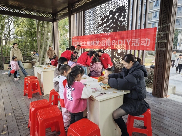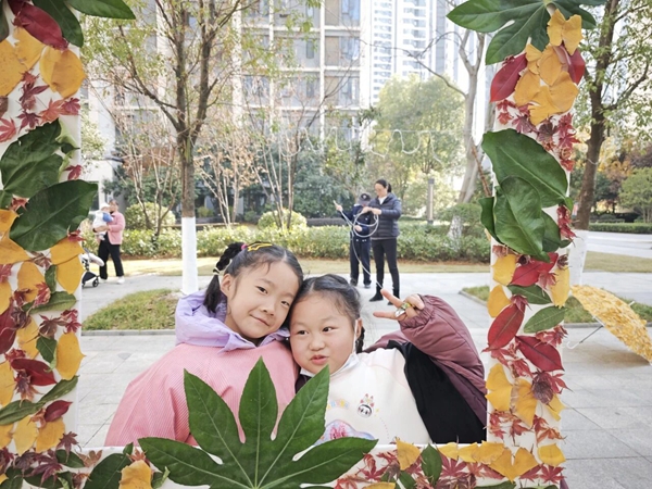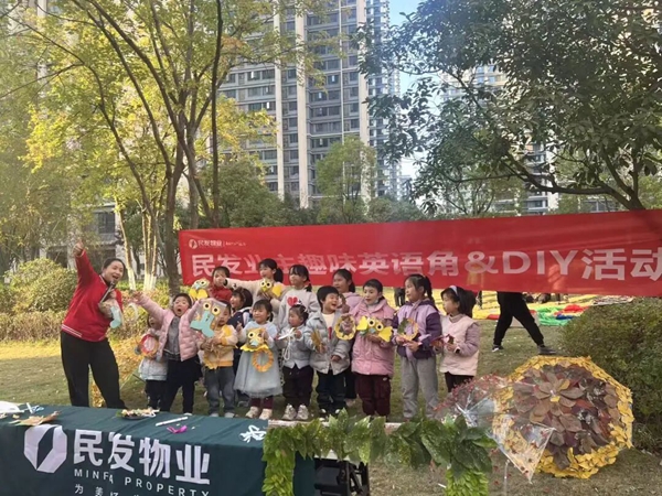 12月7日下午,阳光和煦,秋意正浓。民发物业携手枫叶幼儿园,在东津世纪城唐宁岸、金域府、尚书台三个小区同步举办了一场别开生面的“拾秋趣·享自然”小业主落叶DIY&外教英语角活动。