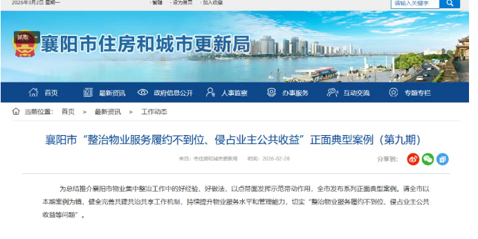 襄阳市“整治物业服务履约不到位