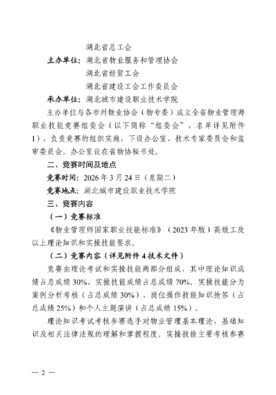 关于举办2026年全省住建行业职业技能大赛——物业管理师竞赛的通知