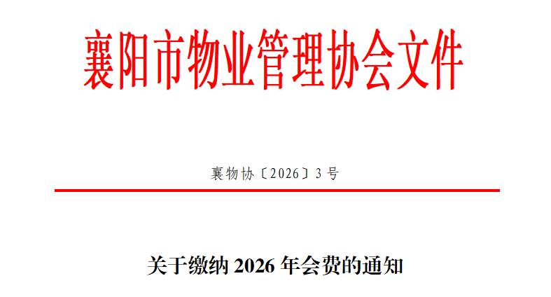 襄阳市物业管理协会旨在为广大会员提供政策咨询和信息交流等服务,开展活动的经费来源主要依靠会员交纳的会费。为了规范会费的收缴,保证协会及各区工作委员会各项工作的正常开展,根据协会《章程》和有关规定,现将2026年交纳会费的有关事项通知如下: