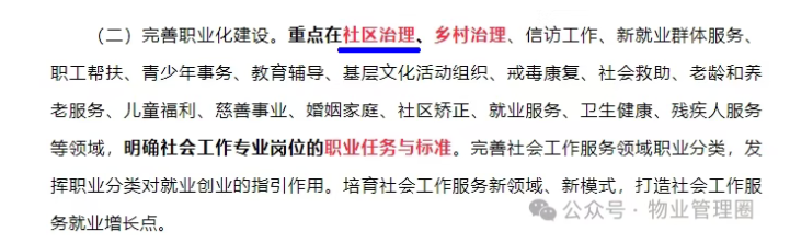 通读《意见》全文,重点关注的领域是社区治理、老龄和养老服务、儿童福利、社会救助等公共服务范畴。业委会是业主自治组织,不属于政府直接管理的机构。