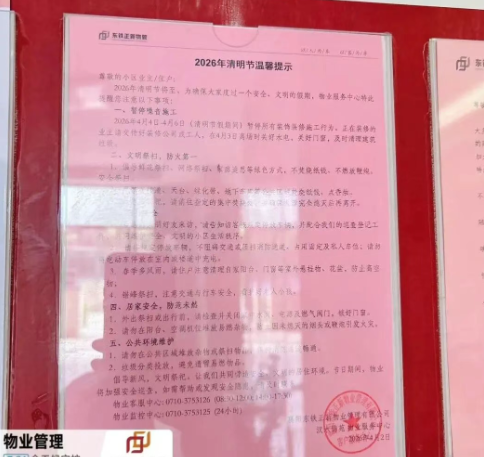 同时,加强辖区内的防火巡查,坚决避免因祭祀烧纸、焚香引发火灾,确保广大业主清明节期间的居住安全。