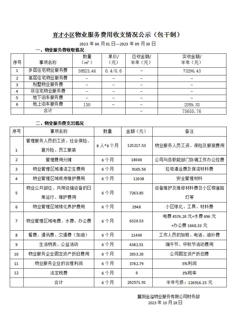 物业服务费用收支情况公示