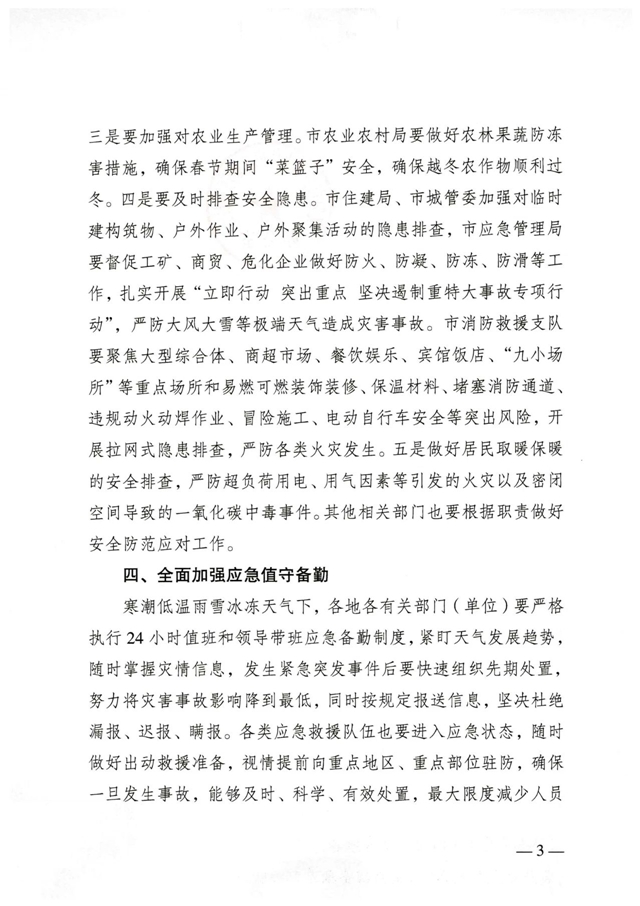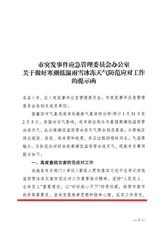 市突发事件应急管理委员会办公室关于做好寒潮低温雨雪冰冻天气防范应对工作的提示函